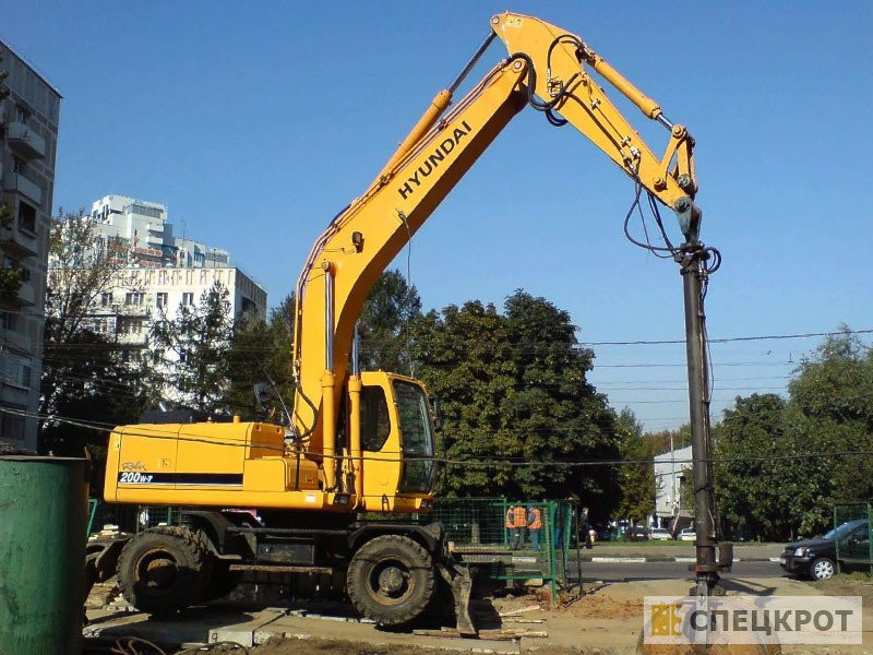 Аренда колесного экскаватора с грейфером 8 метров в Москве и Московской области для копки ям, колодцев и других углублений. Арендовать колесный экскаватор с грейфером 8 метров можно для: